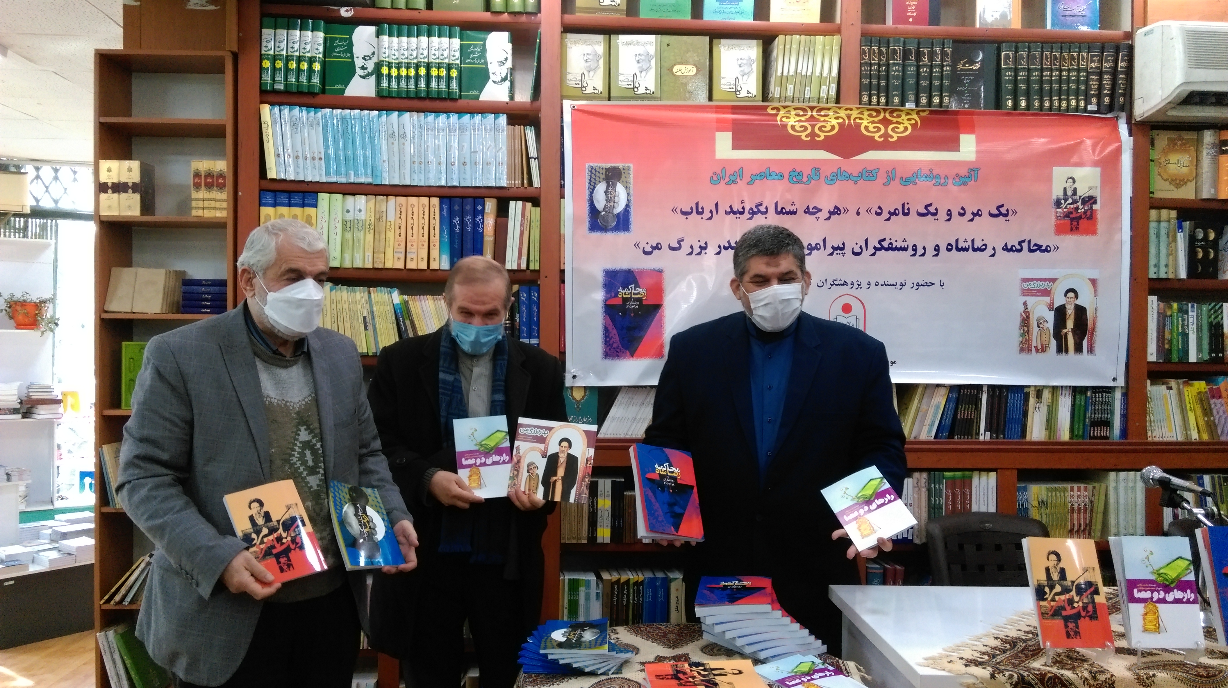 به گزارش رجانیوز مراسم رونمایی کتابهای «یک مرد و یک نامرد»، «هر چه شما بگویید ارباب»، «محاکمه رضاشاه و روشنفکران»، «رازهای دو عصا» و «پدربزرگ من» روز گذشته با حضور احمد عطایی مدیر انتشارات قدر ولایت، محسن بغلانی نویسنده، نادر ملککندی پژوهشگر و عضو هیئتمدیره مؤسسه فرهنگی هنری قدر ولایت و محمدحسین صلواتیان تصویرگر کتاب، در کتابفروشی چاپ ونشر بینالملل برگزار شد.